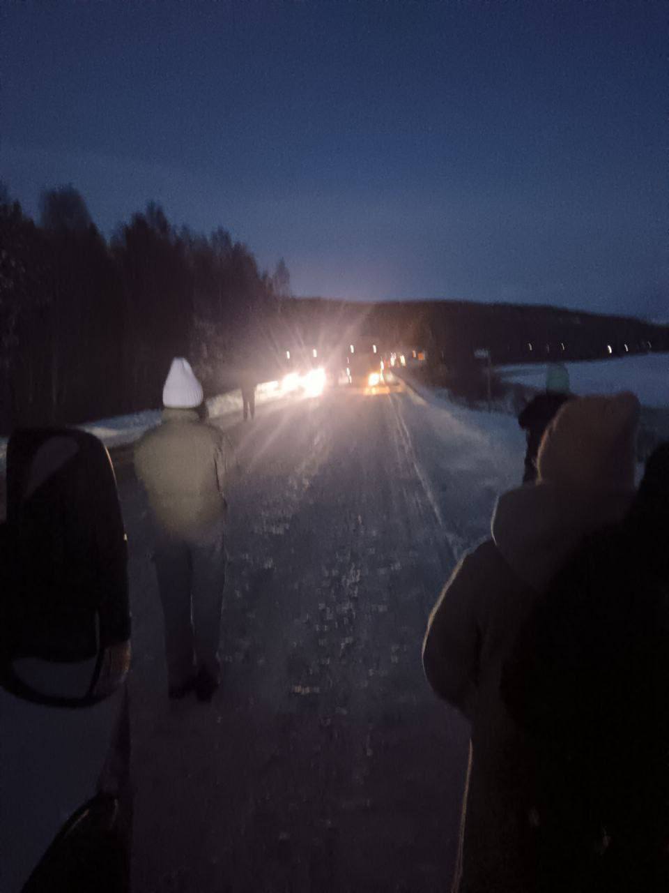 По словам очевидцев, в колонне не только большегрузы, но и легковые машины, маршрутки.