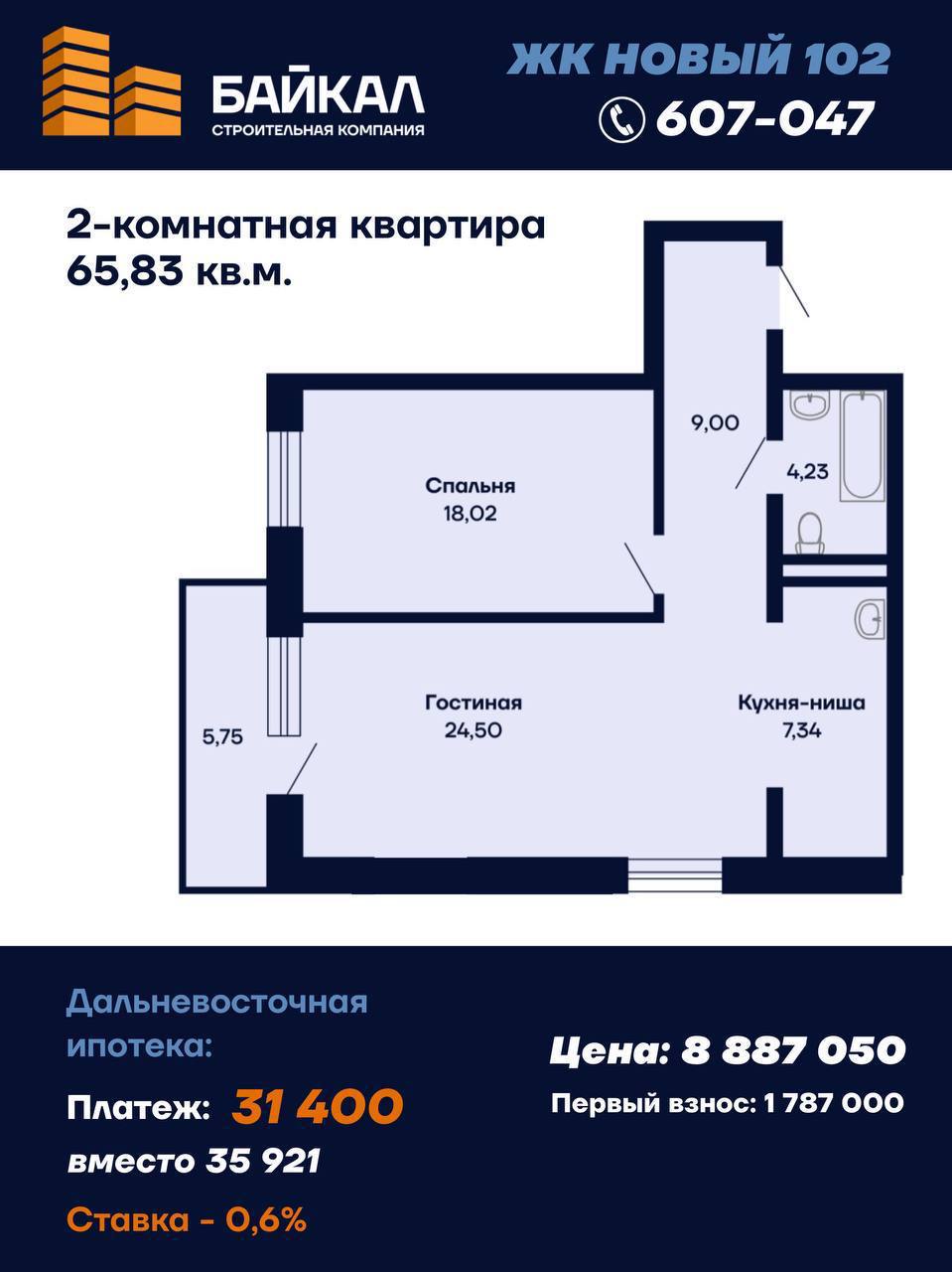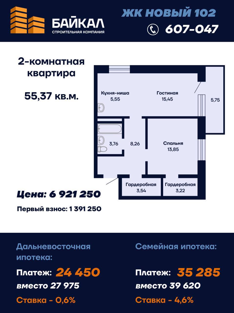 • Спец.предложение распространяется на 2-х комнатные квартиры в ЖК «Новый-102»