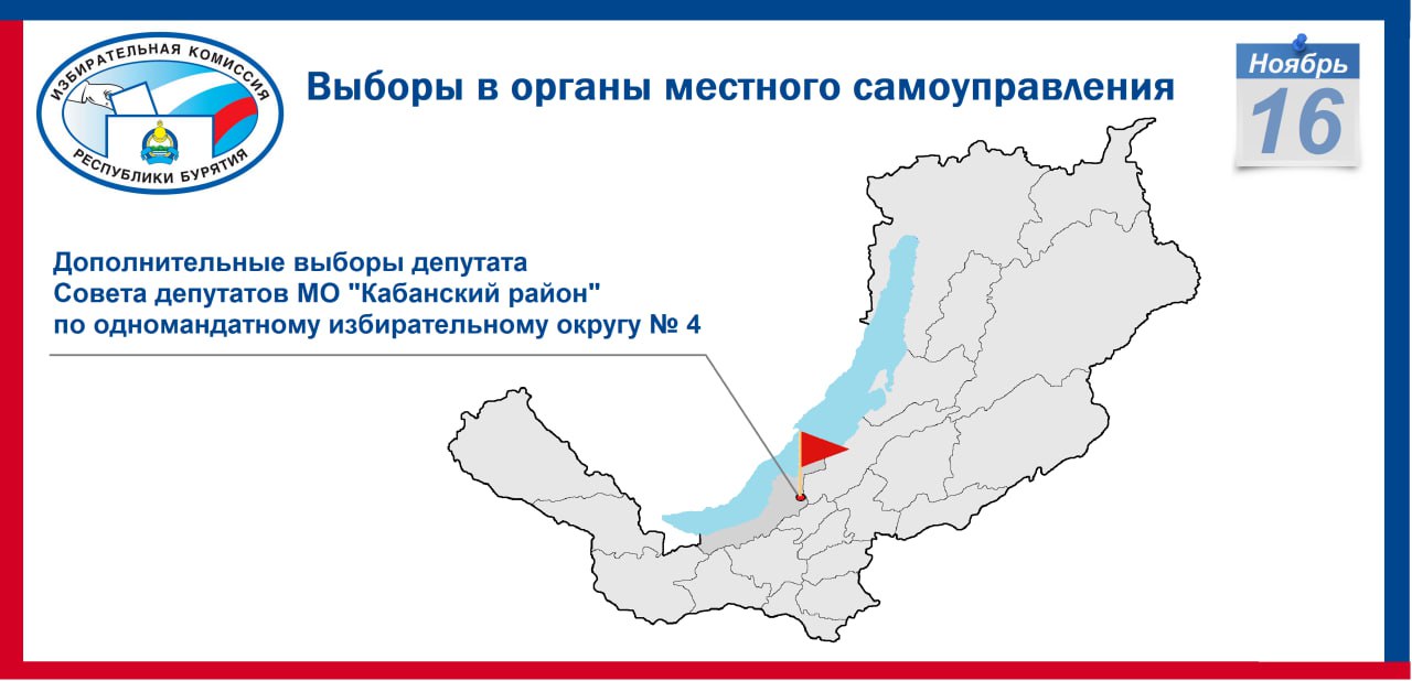 16 ноября 2025 года на территории Республики Бурятия пройдут дополнительные выборы депутата Совета депутатов муниципального образования "Кабанский район" по одномандатному избирательному округу № 4 "Брянский".
