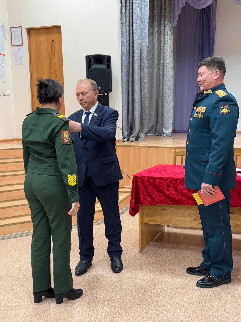 Председатель Народного Хурала Республики Бурятия Владимир Павлов вручил им памятные медали «За участие в специальной военной операции. Благодарная Бурятия», учрежденные для поощрения военнослужащих.