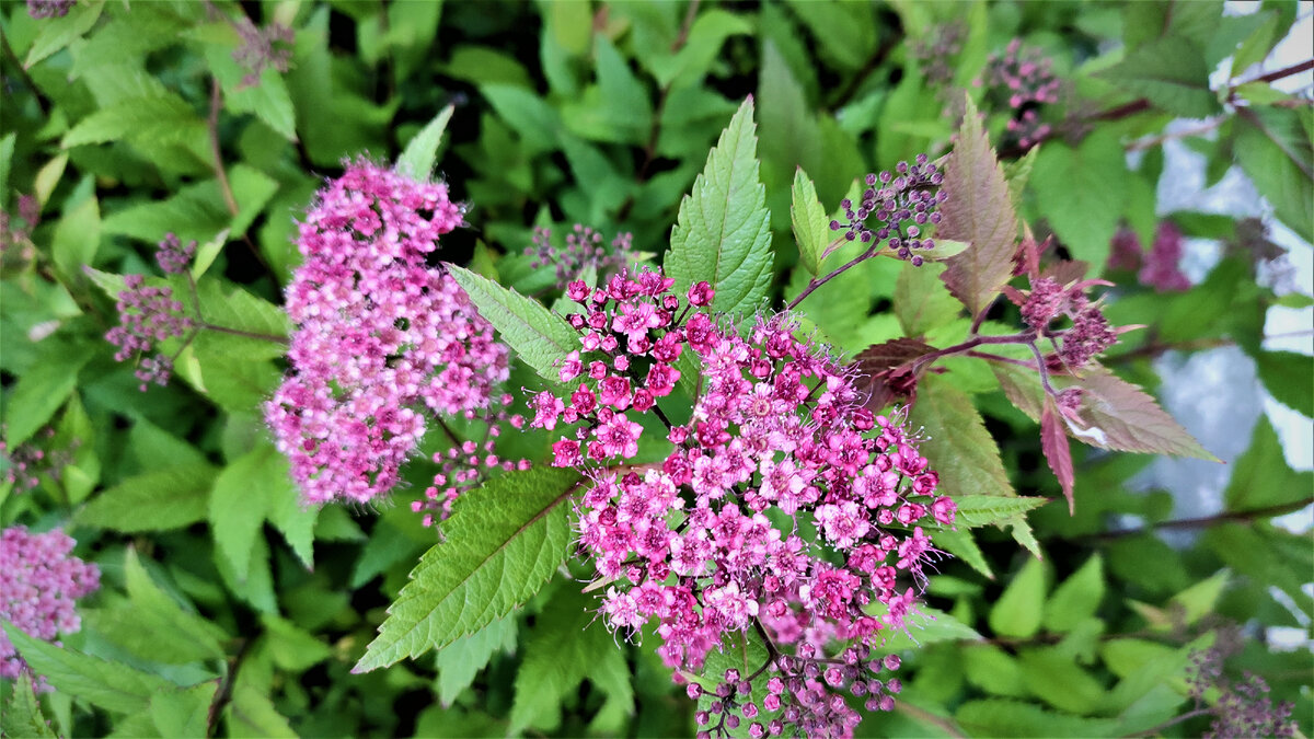 - Спирея японская: Этот небольшой листопадный кустарник радует глаз своими розово-красными цветами с мая по август. Осенью листья меняют цвет на ярко-желтый и бордовый, создавая удивительный контраст.