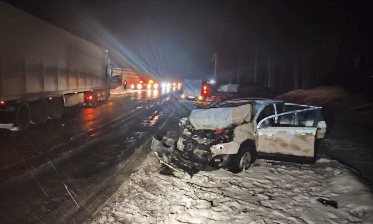 Предварительно, водитель Nissan Qashqai не справился с управлением, врезался в ограждение, а затем выехал на полосу встречного движения и столкнулся с Scania R440.