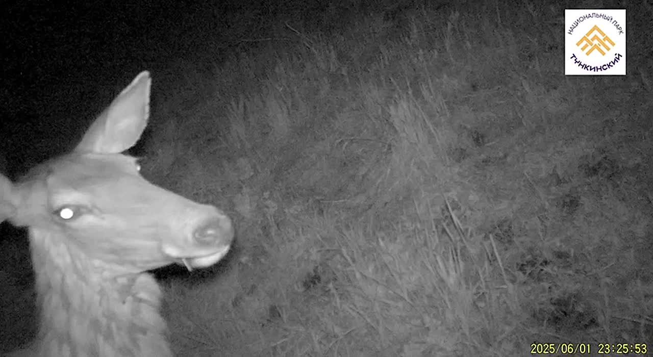 Благородный олень попал в объектив фотоловушки в Тункинском национальном парке.