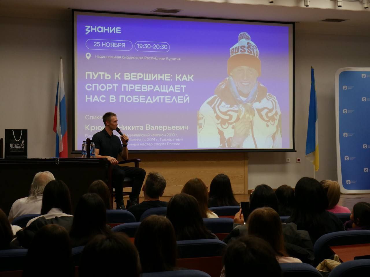 Вчера вечером, несмотря на поздний час, в Национальной библиотеке состоялась поистине вдохновляющая встреча с Олимпийским Чемпионом по лыжным гонкам Никитой Крюковым, организованная по приглашению Российского общества «Знание»