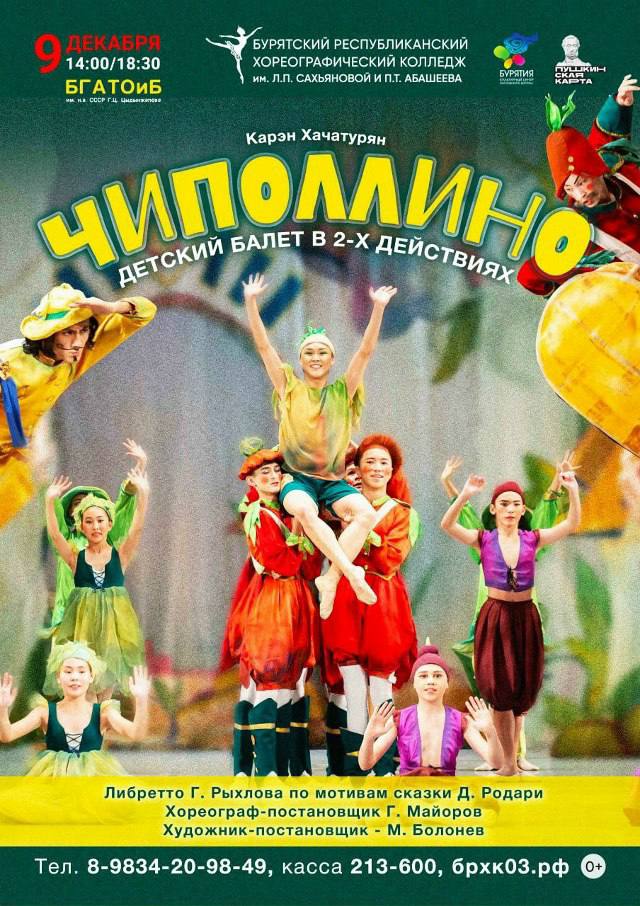 Показ балета «Чиполлино» состоится 9 декабря дважды: дневной спектакль в 14:00 и вечерний в 18:30 на сцене Бурятского театра оперы и балета.