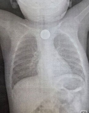 Годовалый малыш проглотил литиевую батарейку и получил химический ожог.