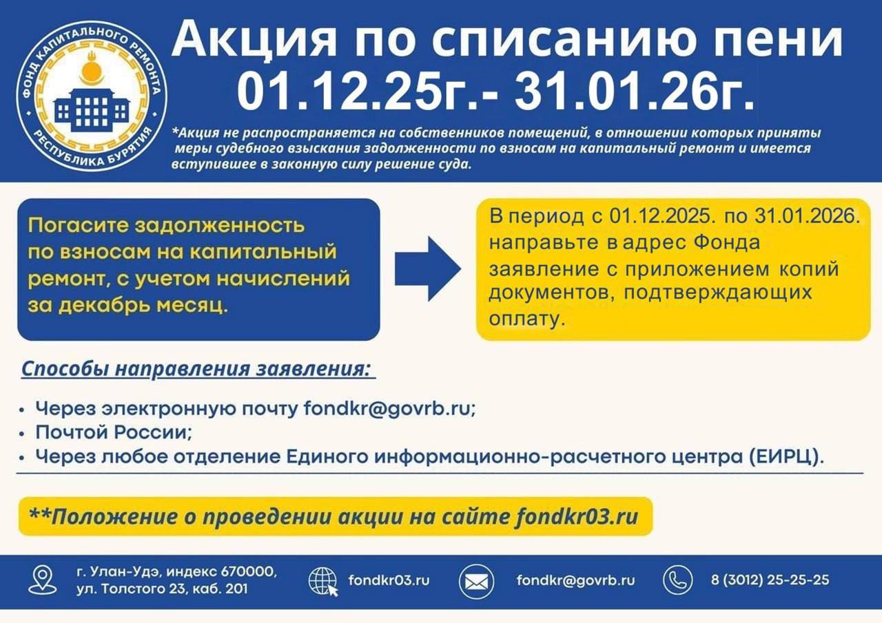С 1 декабря по 31 января жители Бурятии смогут списать начисленные пени по взносам на капитальный ремонт при условии погашения задолженности.
