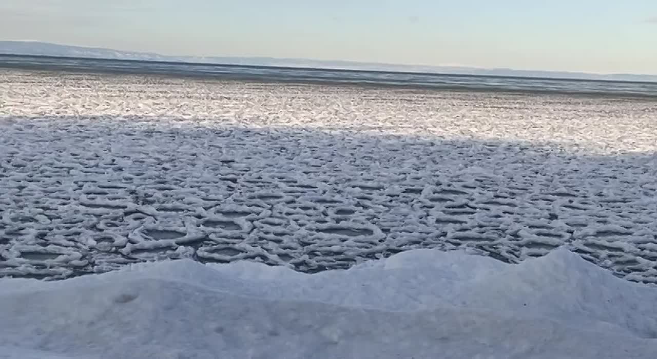 Священное озеро встает постепенно, и в отдельных местах его поверхность покрылась редким природным явлением, так называемыми ледяными лотосами. Также такой лед называют чашечным, тарелочным или блинчатым. Он образуется при температуре около нуля и лёгкой волне. Отдельные ледяные диски могут достигать трёх метров в диаметре и до 15 сантиметров толщины. Это редкая и завораживающая картина