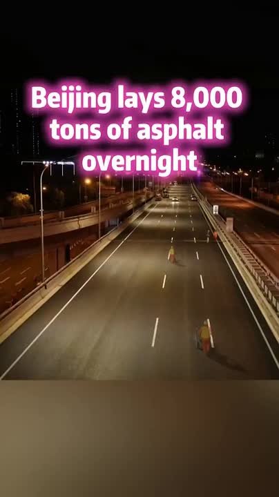 В Пекине за одну ночь уложили восемь тысяч тонн асфальта.