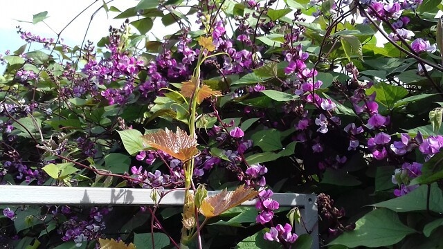 На протяжении всего вегетационного периода долихос уверенно радует глаз нежными сиреневыми цветами, которые вскоре сменяются эффектными фиолетовыми бобами, увенчающими лиану. Такой контраст лишь добавляет в визуальную палитру сада, придавая ему свежесть и яркость.