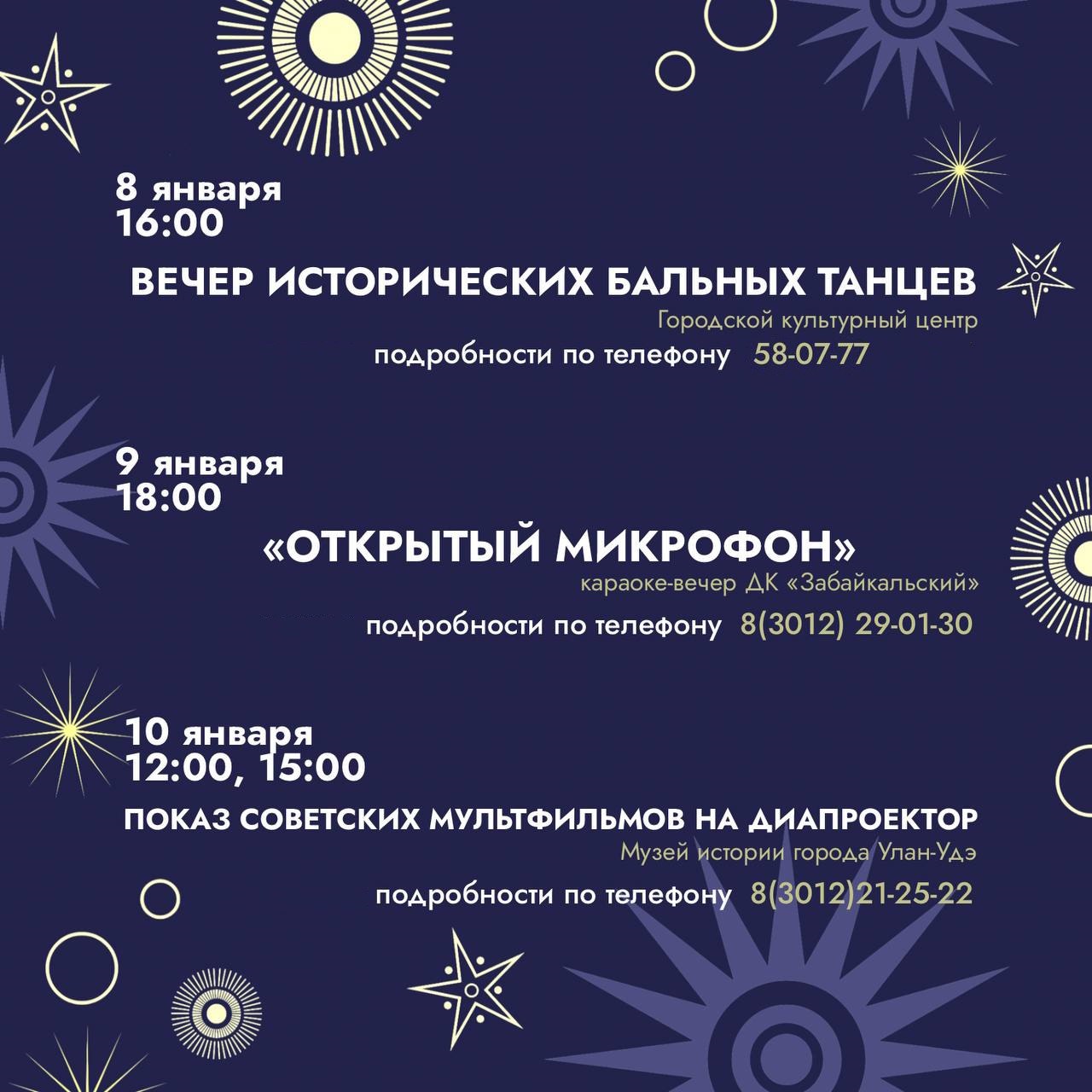 Полный свод городских мероприятий на декабрь и новогодние каникулы, а также туристические маршруты в районы Бурятии можно увидеть по ссылке
