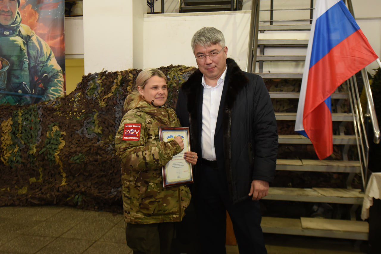 Глава Бурятии Алексей Цыденов поблагодарил волонтеров за их труд и вручил благодарственные письма представителям народного движения «Все для фронта, Все для Победы» и руководителям организаций, помогающих волонтерам.