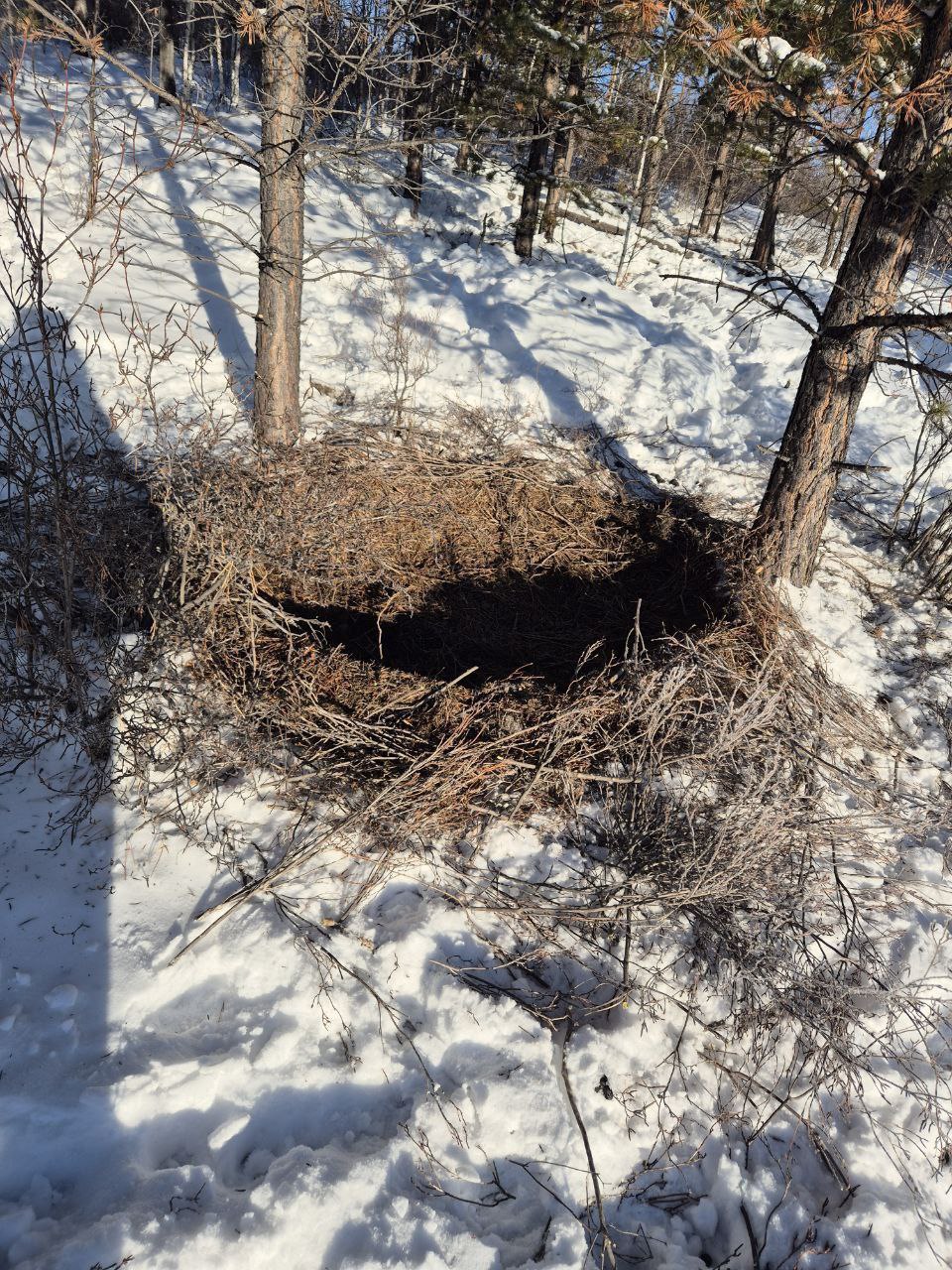 На фото - «гнёздышко» дикого кабана