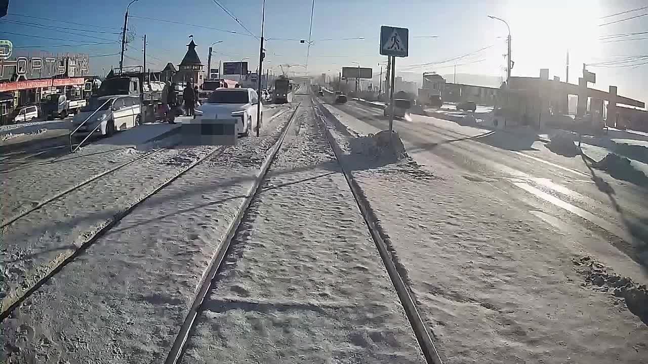 В предновогодних пробках в Улан-Удэ стоят не только машины, но и трамваи.