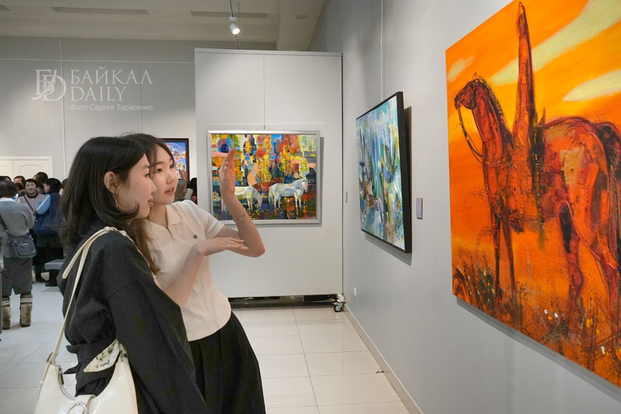 Полотна Бальжинимы Доржиева дарят зрителю высокое небо и яркое солнце Бурятии, пёстрое разнотравье степи, аутентичный колорит национальных костюмов и свежесть ослепительного снега.