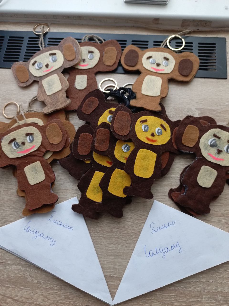 Девочка приложила к каждому самодельному Чебурашке письмо с тёплыми словами, адресованными бойцам.