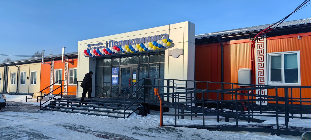 В селе Хоринск прошло открытие новой поликлиники Хоринской центральной районной больницы. Здание выполнено из модульных конструкций, что позволило возвести его в короткие сроки.