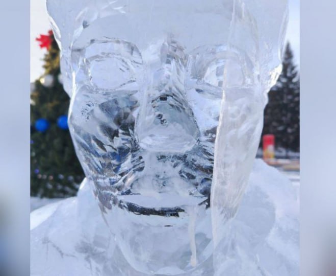 Акт вандализма неизвестные совершили над ледовой скульптурой Снегурочки. Её облили некоей жидкостью, из-за чего лицо оказалось обезображено.