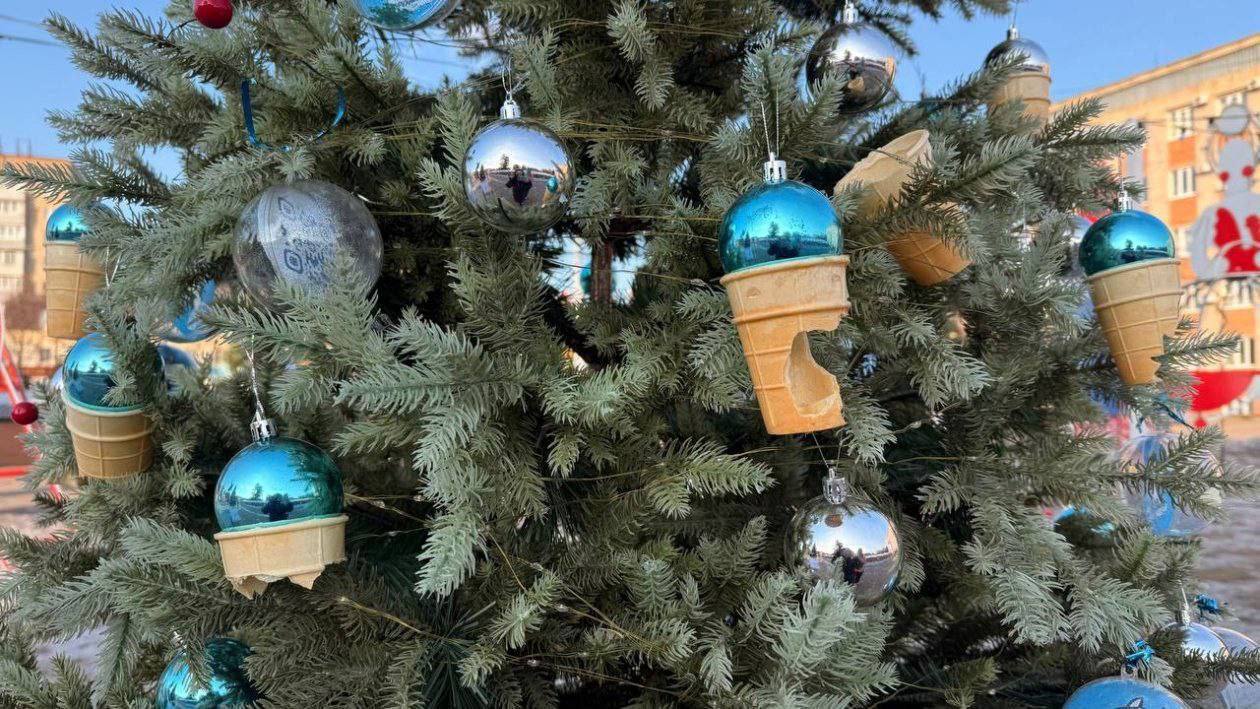 Неизвестные покусали новогодние игрушки на ёлке на центральной площади Уссурийска