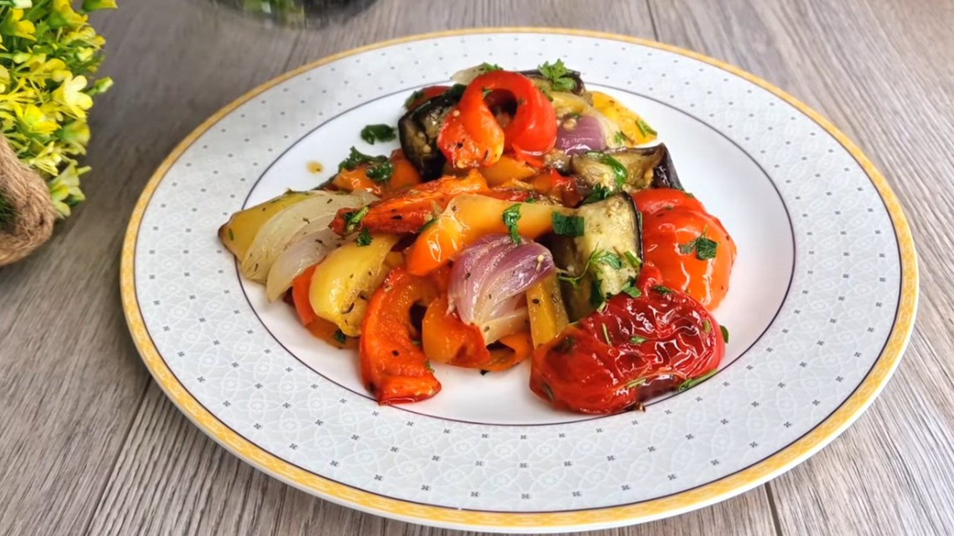 В миске соединяем масло, соль, кориандр и сухой чеснок. Этой смесью поливаем овощи, хорошенько их перемешиваем и отправляем в духовку на 30-35 минут при температуре 200 градусов.