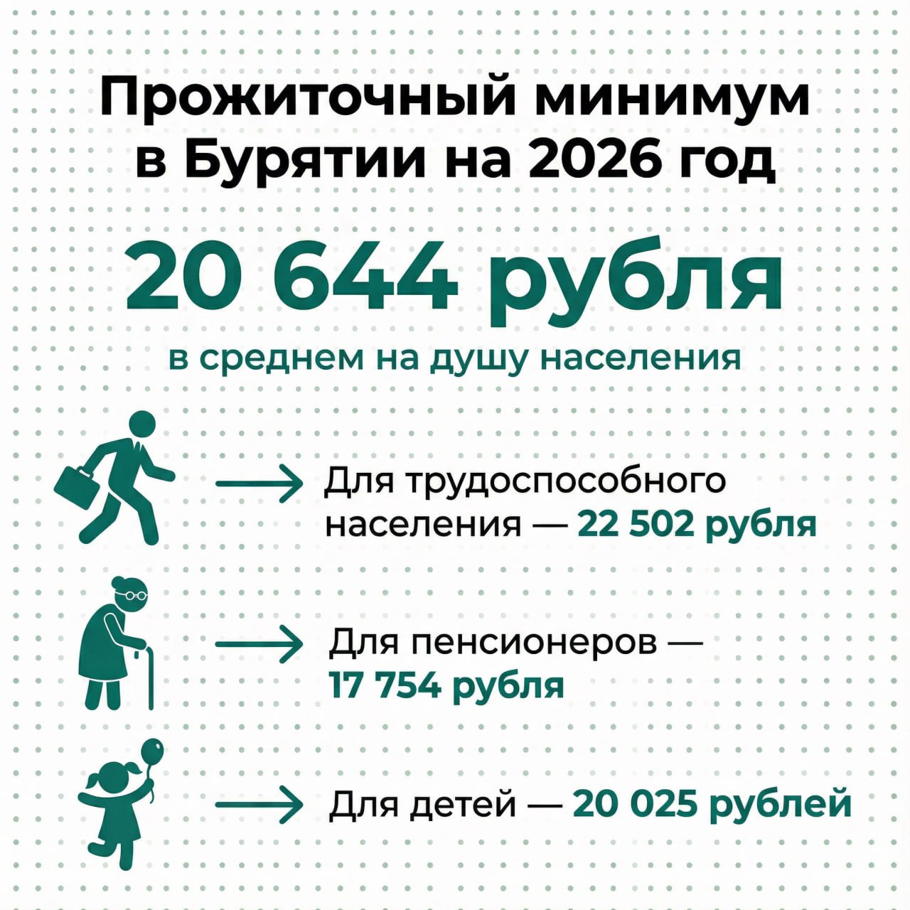 С 1 января 2026 года в Республике Бурятия устанавлены новые величины прожиточного минимума — 20 644 рубля в среднем на душу населения.