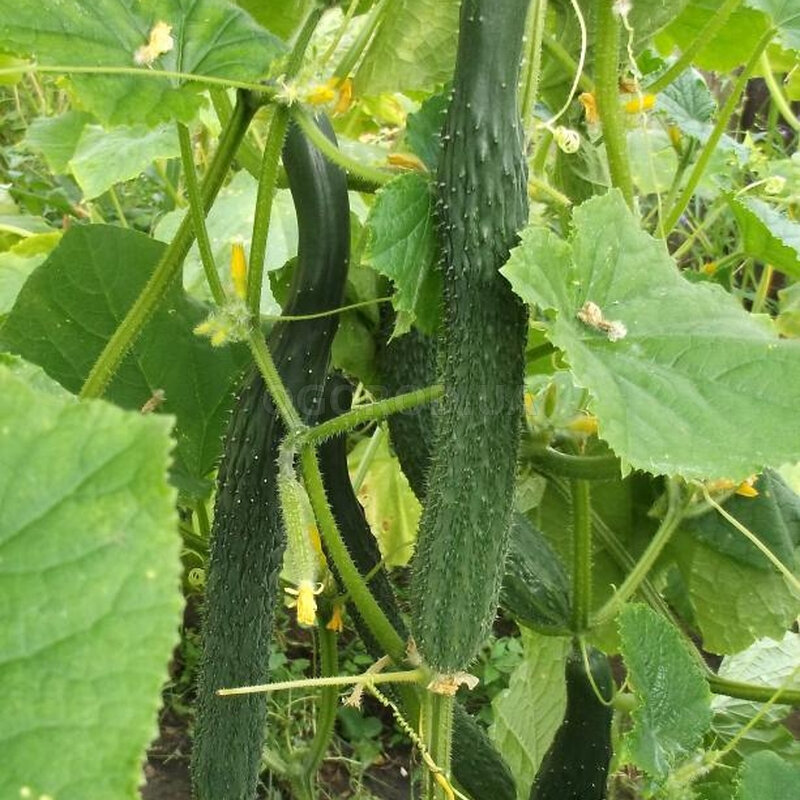 - Огурец «Китайский холодоустойчивый F1»: Этот сорт выделяется мощными кустами с умеренной облиственностью. Плоды длиной до 50 см с тонкой, глянцевой кожицей имеют классический сладковатый вкус и не горчат. Устойчив к заболеваниям и способен выдерживать пониженную температуру.