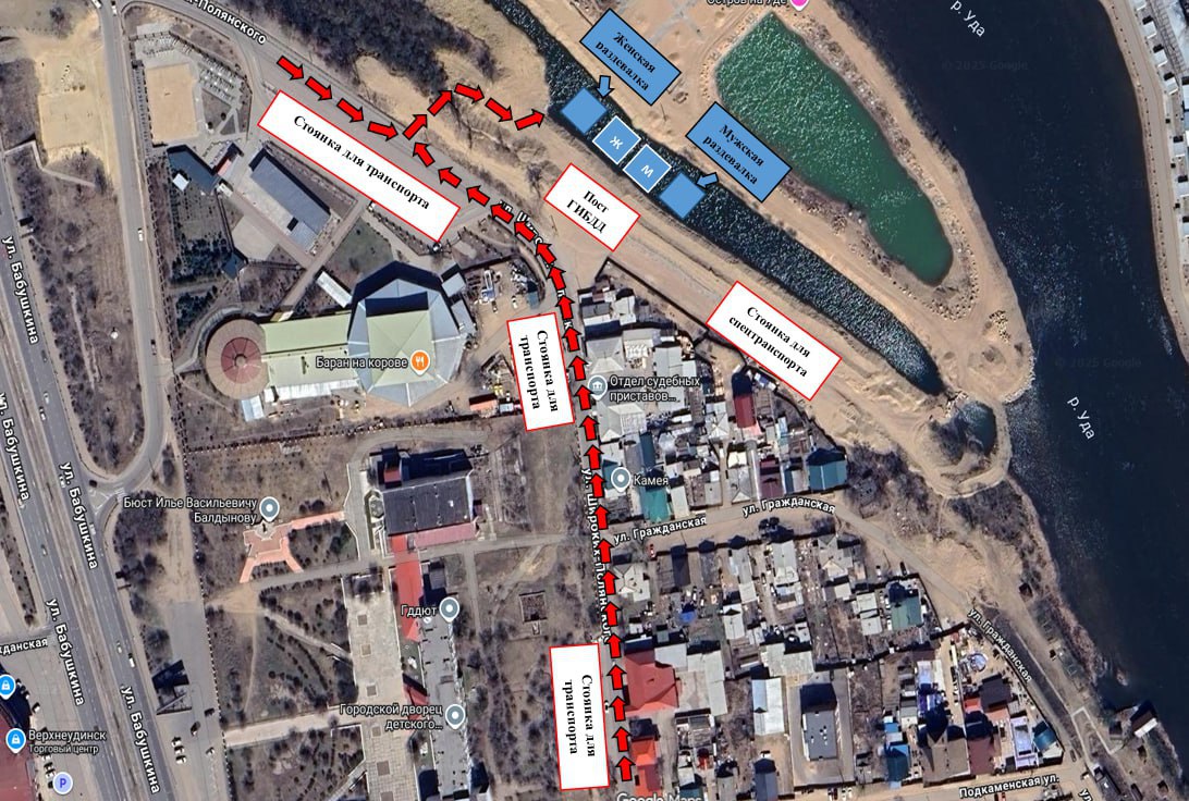 Сегодня коммунальщики начали расчищать площадку на реке Уда в районе улицы Широких-Полянского, 3. Здесь установят две купели и палатки для крещенских купаний.