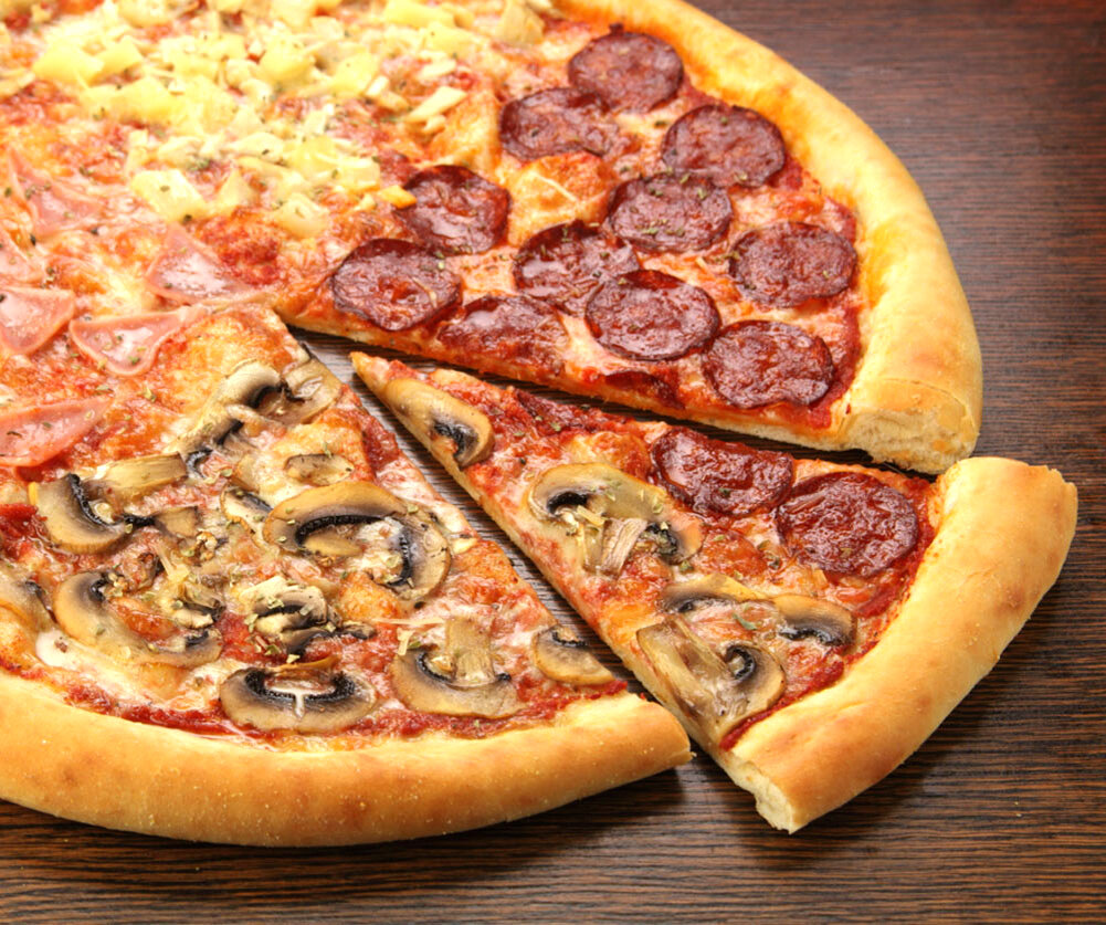 Можно использовать любые ингредиенты, которые есть под рукой. В этом рецепте используется колбаса, помидоры и обжаренные грибы. Для особого вкуса на верхушке выкладывается сеточка из майонеза, а затем всё посыпается натертым сыром.