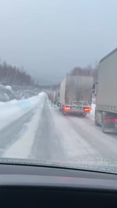 Нам пишут: Огромная пробка из фур образовалась перед Байкальском на трассе «Байкал».
