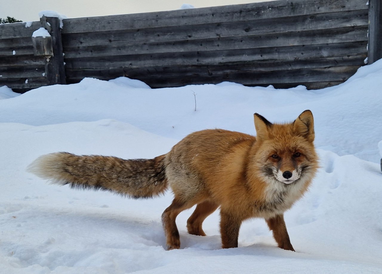 Уже звезда интернета и местный любимец - лис Алисай - попозировал для сотрудников Баргузинского заповедника. В этот раз его пышные формы могут намекать на отменный аппетит.