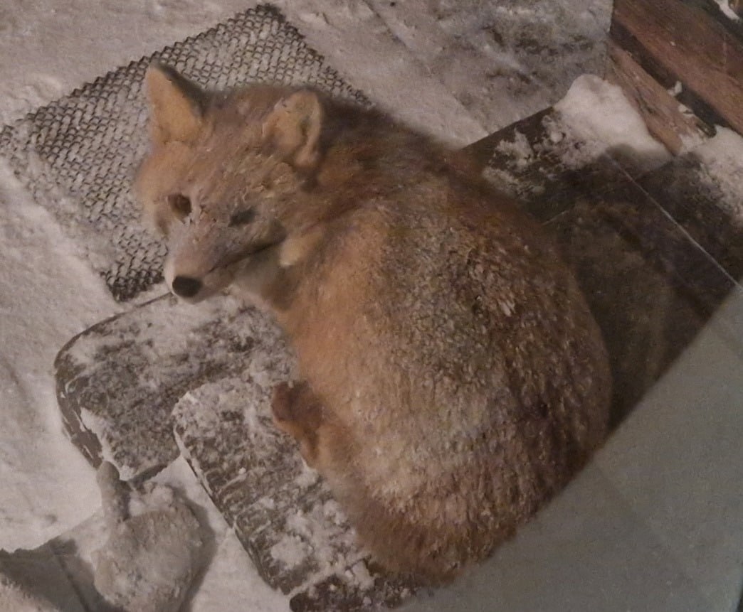 На финальном кадре можно заметить и обмороженную мордочку. Местный инспектор Юрий Гороховский уже окрестил его «припудренным Алисаем».
