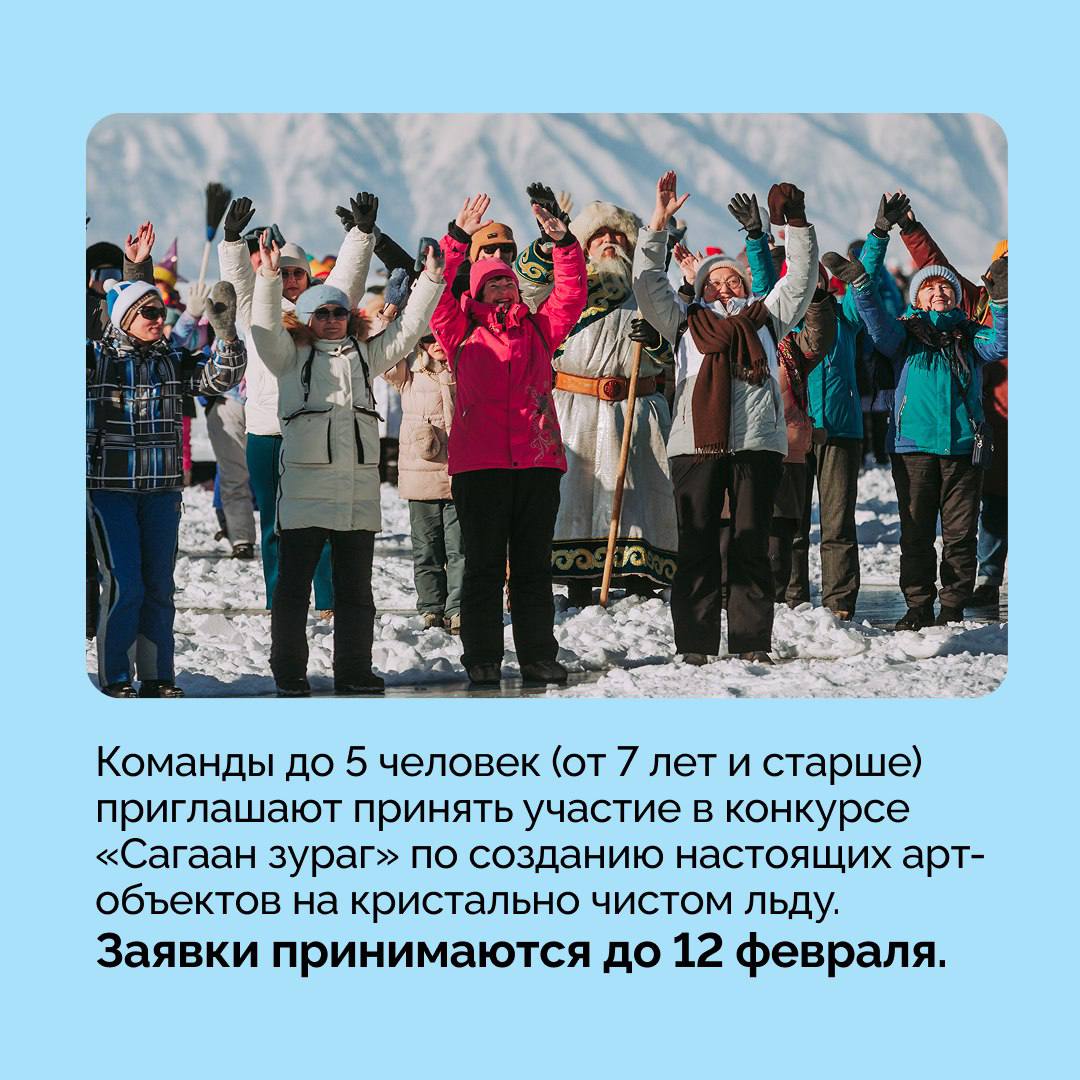 Главный конкурс «Сагаан зураг». Создайте уникальную снежную картину всего за 2 часа. Тема года: «Символ Восточного Нового года — Лошадь» или «Год единства народов России». Положение по ссылке.