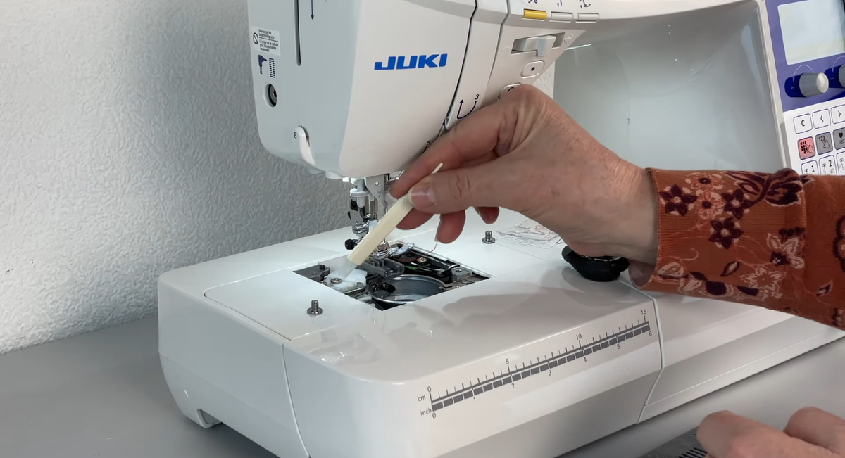 Чистка нитеулавливателя и игловодителя также требует внимания. Всегда используйте только качественное масло для швейных машин.