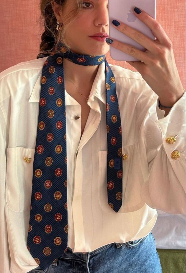1. Классический галстук. Эта деталь из мужского мира может добавить оригинальности и подчеркнуть женственность. Галстук можно носить по-разному: свободно завязанным или в роли пояса или шарфа.