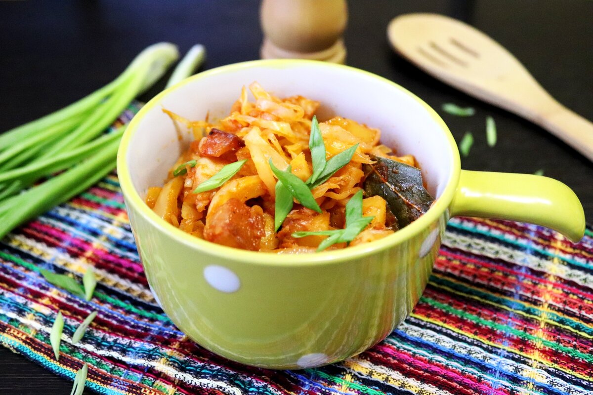 Приготовленный из обжаренного картофеля и свежей капусты, с добавлением томатной пасты, этот гарнир не только вкусен, но и максимально сбалансирован по составу. Его полюбили многие, и он стал постоянным спутником семейного ужина.