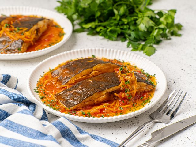 Камбала — это не только вкусная, но и полезная рыба с белым, нежным мясом и слегка сладковатым вкусом. Она богата белком, фосфором и полезными омега-3 жирами, а содержание жира в ней минимально. Один из наиболее удачных способов раскрыть её вкус — это приготовить камбалу в ароматном томатном соусе, который, в дополнение к пряностям и свежим овощам, станет идеальным обрамлением для этой рыбы. Такое блюдо отлично подойдет как для обычного семейного ужина, так и для праздничного стола — оно сочетает в себе полезные ингредиенты и ресторанный вкус.