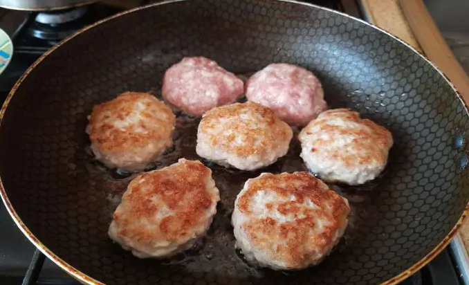 Решение: сначала обжарьте котлеты на среднем огне 2–3 минуты с каждой стороны, чтобы получить аппетитную корочку, а затем доведите до готовности на тихом огне.