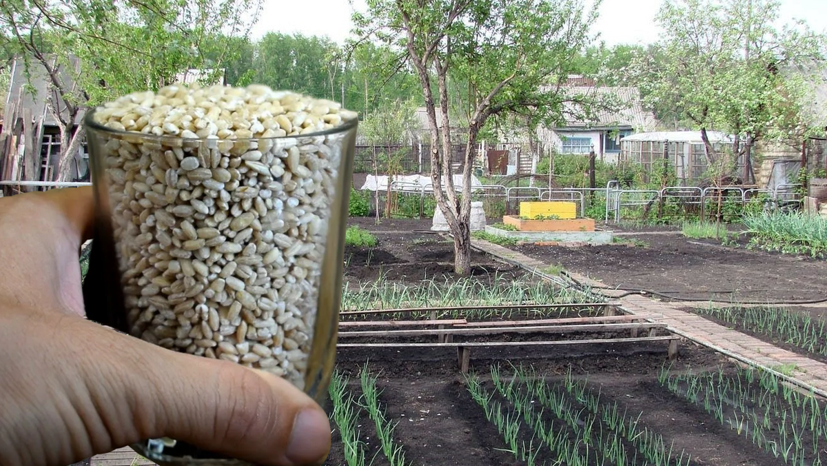 Использование простое: залил тёплой водой стакан крупы, дал ей ночь набухнуть, потом ввёл в почву на участке — перед посадкой в лунку или поверх верхнего слоя. Результат приходит постепенно, без резких скачков и без запаха.