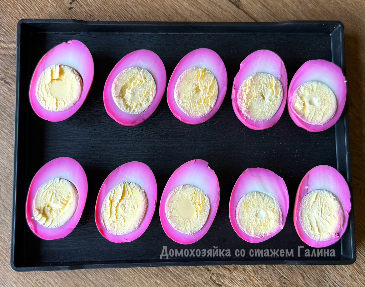 Готовые яйца легко подойдут к салатам, с сельдью или на тосте с маслом. Розовый оттенок может зависнуть на тарелке как маленький праздник, который уместен в любое время года.