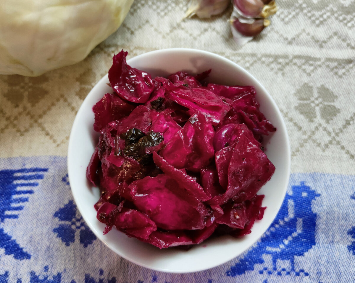 Что понадобится: капуста, свёкла, чеснок, красный перец, сельдерей, укроп, соль, сахар, масло. Все это превращается в насыщенную заготовку, которая не требует дополнительных добавок после приготовления.