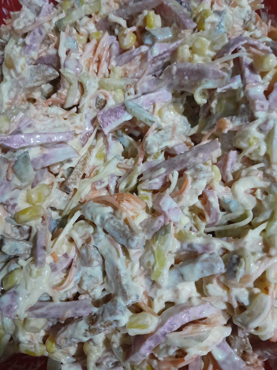 Салат с сухариками это классика кулинарии, знакомая каждому. Однако, предлагаемый вариант заслуживает особого внимания: он идеально сбалансирован, и приготовление займет считанные минуты. Это настоящий кулинарный помощник в спешке, когда гости на подходе, а сложные блюда готовить нет времени и сил. Сытный и эффектный, этот салат неизменно вызывает восторг. Многим он известен как Салат-Заряжайка, ведь после него становится легко и приятно, а чувство сытости приносит удовольствие.