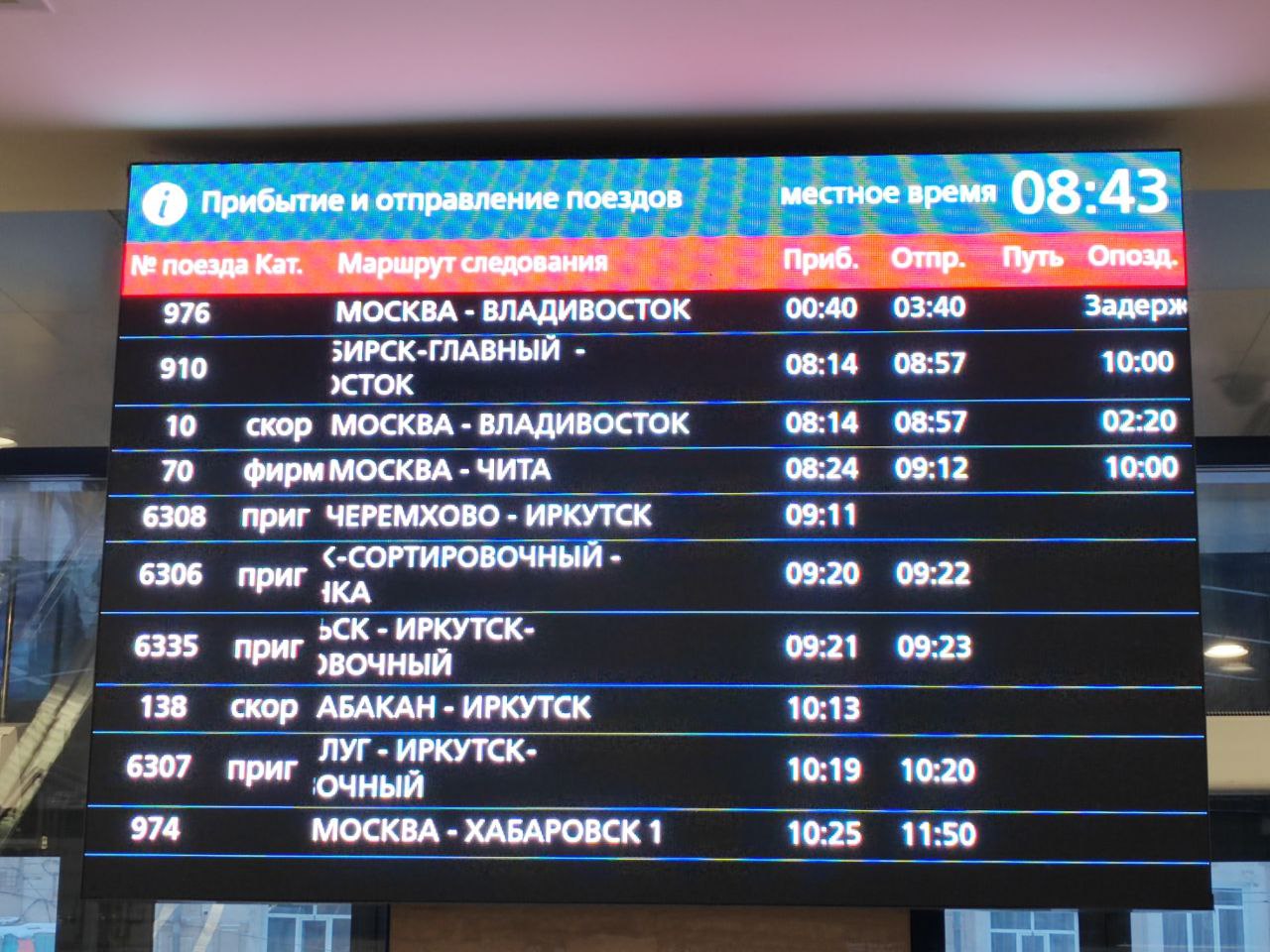 Нам пишут: скорый поезд "Москва - Владивосток" номер 10 задержан на 2 часа 20 минут, фирменный поезд "Москва - Чита" и другие на 10 часов. Причины не сообщаются. Возможно на ситуацию повлияло происшествие, произошедшее сегодня утром в Забайкалье.