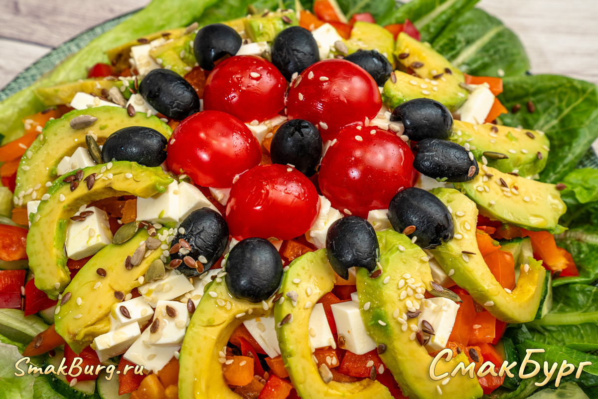 В центре внимания оказываются авокадо и маслины, которые раньше могли показаться необычными для классического рецепта. Здесь они не выделяются, не спорят с остальными вкусами, а становятся тем самым нюансом, который делает салат праздничным без лишней нарядности.