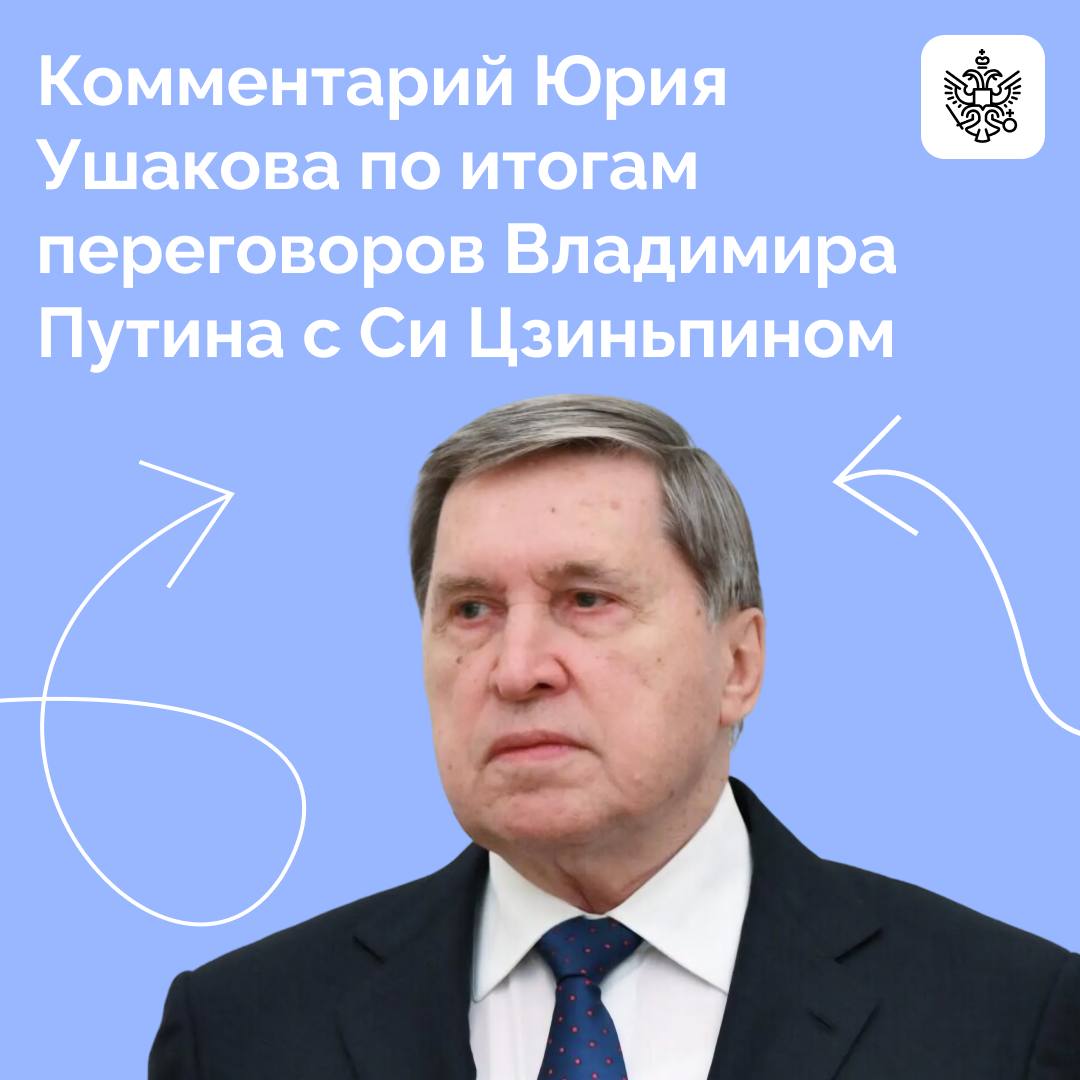 Помощник Президента Юрий Ушаков прокомментировал переговоры Владимира Путина и Си Цзиньпина