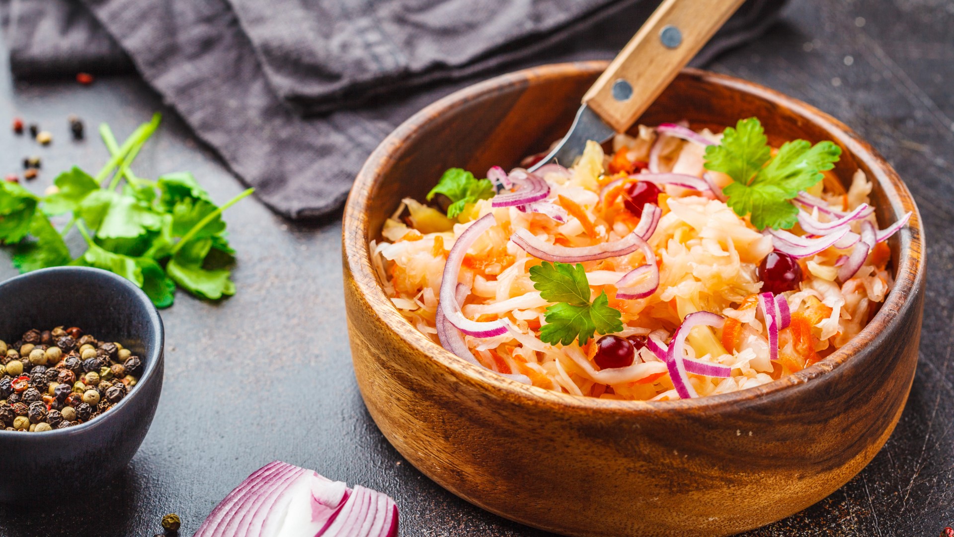 Квашеная капуста станет в сто раз вкуснее, если подать ее не как гарнир, а сделать полноценное блюдо. Этот салат готовить еще проще, чем винегрет, а оригинальный вкус поразит ваших домочадцев, пишет Городовой.