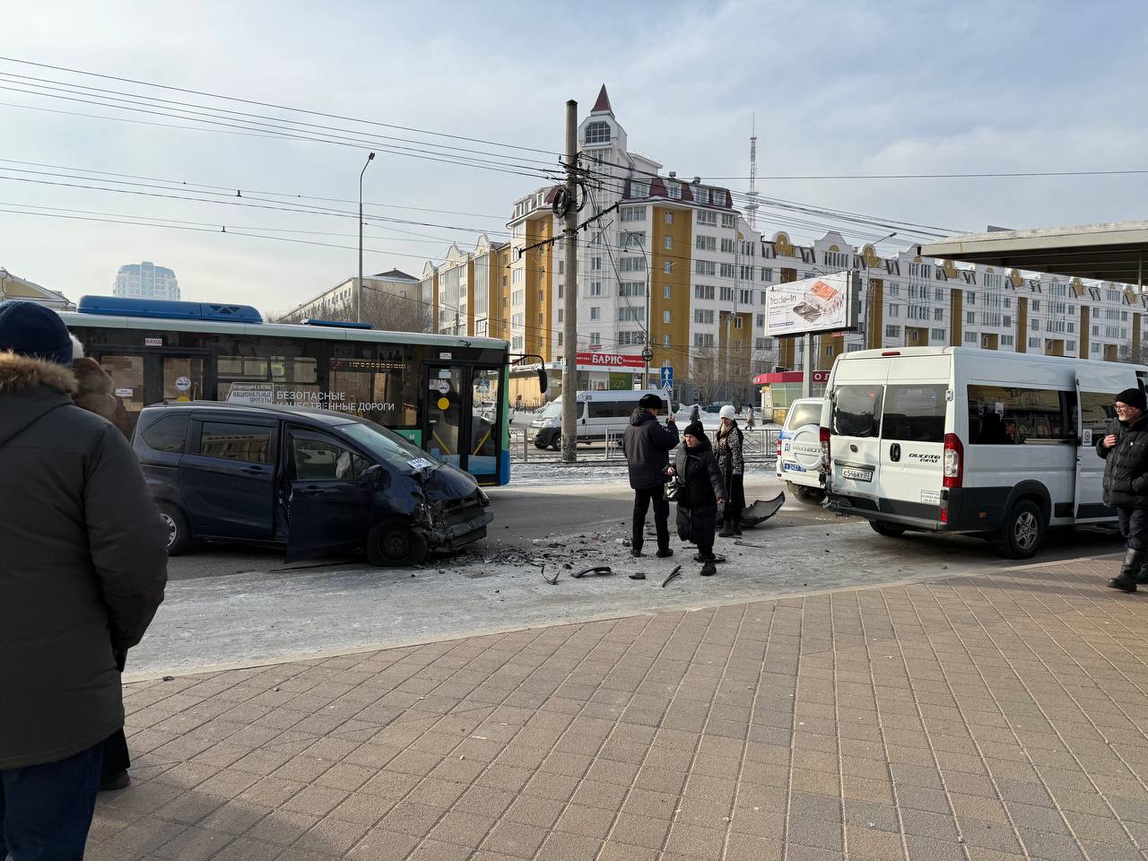 По предварительным данным, сегодня утром на ул. Терешковой водитель «Тойоты Белта» столкнулся с «Хондой Фрид». От полученного удара «Хонда» врезалась в автобус «Фиат Дукато», следовавший по маршруту № 97.В результате происшествия...