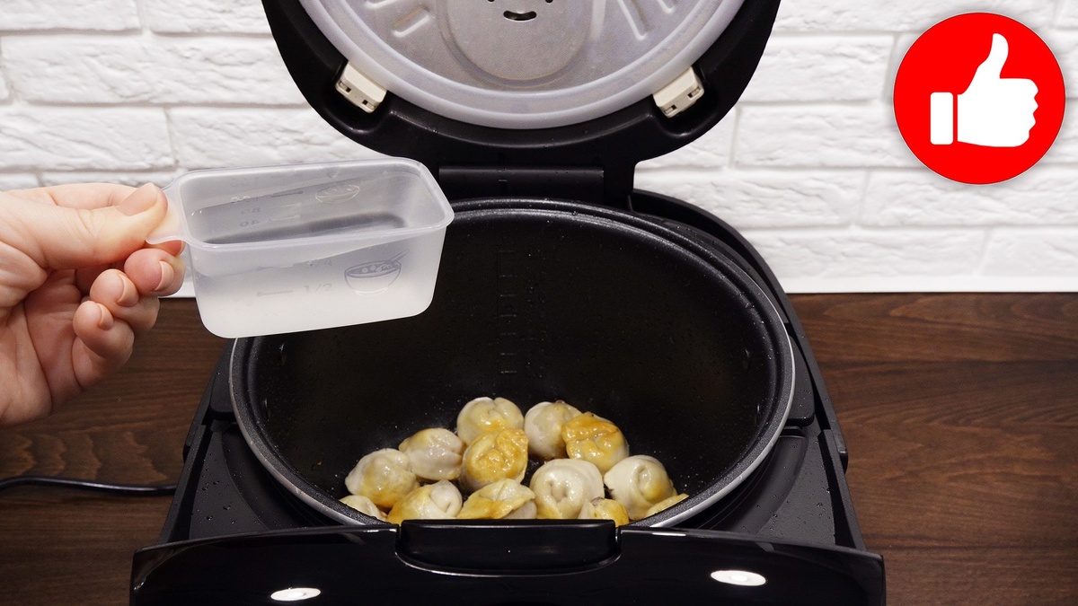 После жарки пельменей, в чашу добавляется горячая вода и соль. Устанавливают режим «Тушение» или «Мультиповар» при температуре 130 °C, и готовят 10 минут. За 5 минут до завершения готовки крышку приоткрывают, добавляют сливочное масло и тщательно перемешивают. Финальный штрих — 5 минут на открытой крышке, чтобы пельмени дошли до идеального состояния.