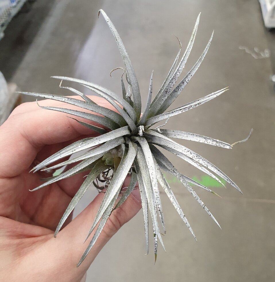 В одном из крупных магазинов было замечено растение тилландсия, покрытое серебристой краской, с ценой 430 рублей. Эти атмосферные растения не имеют корней для питания и зависят от чешуек на листьях, которые могут легко повредиться. Таким образом, краска может повредить их способности к дыханию и питанию. Станет ли оно выживать дальше – вопрос открытый.