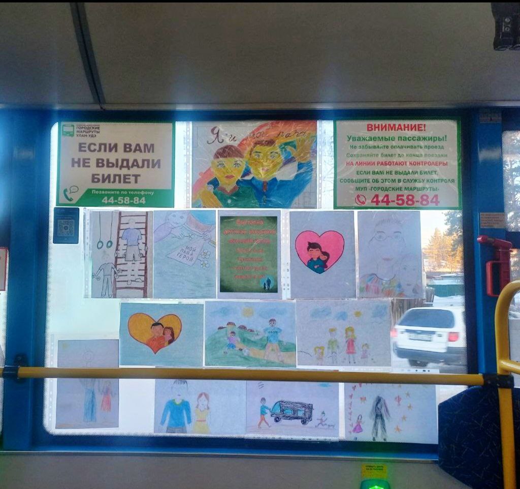 Дети создали в улан-удэнском автобусе выставку рисунков «Я и мой папа»