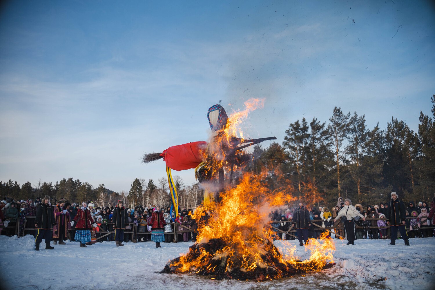 Кульминацией вечера стало традиционное сожжение чучела Масленицы. Оно вспыхнуло ярко и горело долго — по народной примете, это сулит жаркое и солнечное лето.